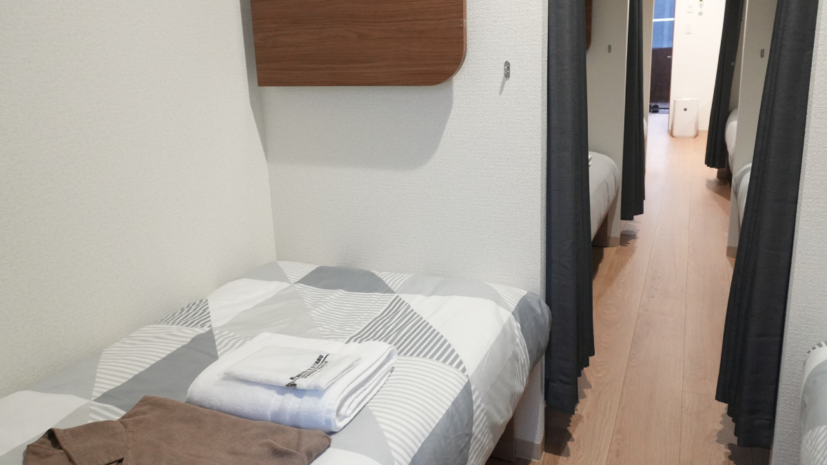 低価格で宿泊したい方にお勧めです。ベッドは壁とカーテンで仕切られていています。
