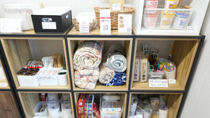 セルフコンビニで販売。紙皿、箸をセットしています。